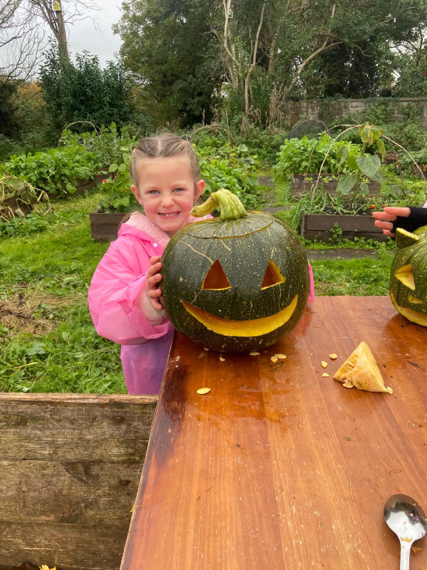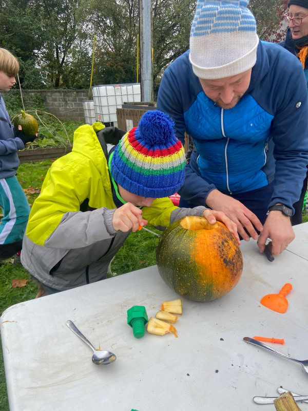 The kids had a blast carving pumpkins, enjoying small refreshments, and sharing the joy of their efforts with friends and family. This event was a perfect blend of fun and pride, highlighting the dedication of our young gardeners and the strong bonds within our community.